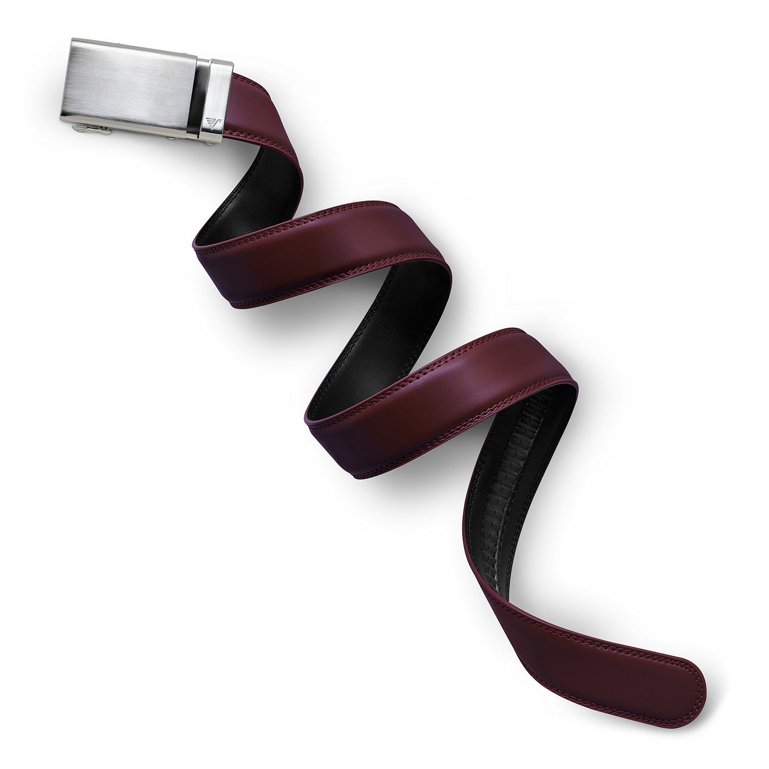 Colors: Brushed stainless steel or gold buckle. Burgundy (aka: oxblood maroon) leather.