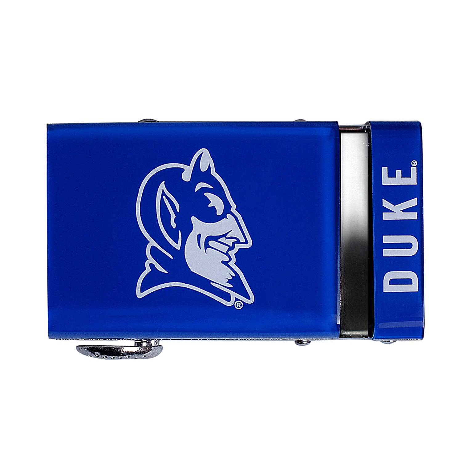 The officially licensed Duke Blue Devils Belt features an imprinted team logo and team name on the buckle under a clear acrylic finish. Genuine leather strap with protective coating and the interior houses a special track which is part of the unique no-holes perfect fit system. The buckle can be detached from the leather strap so you can always trim it down to size.