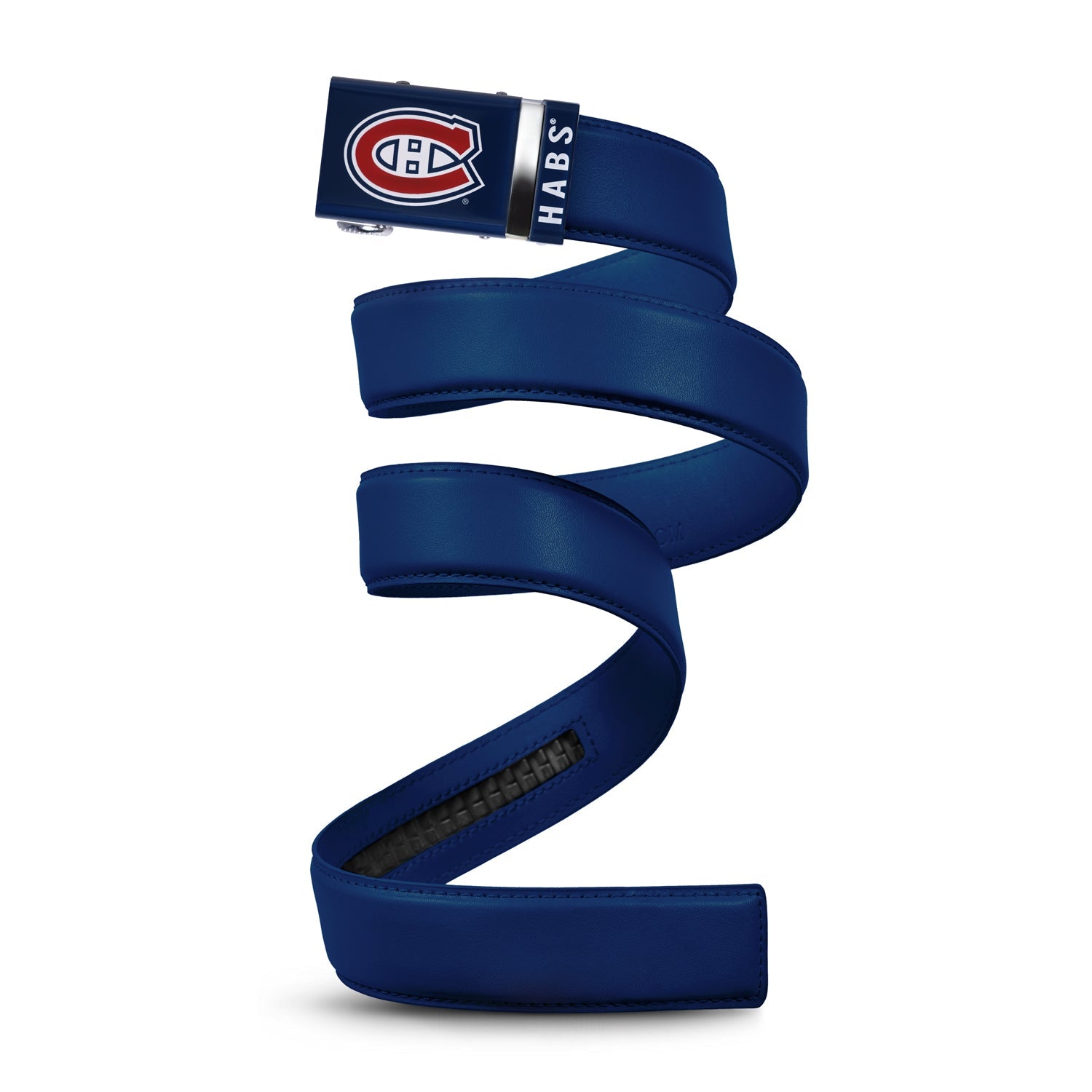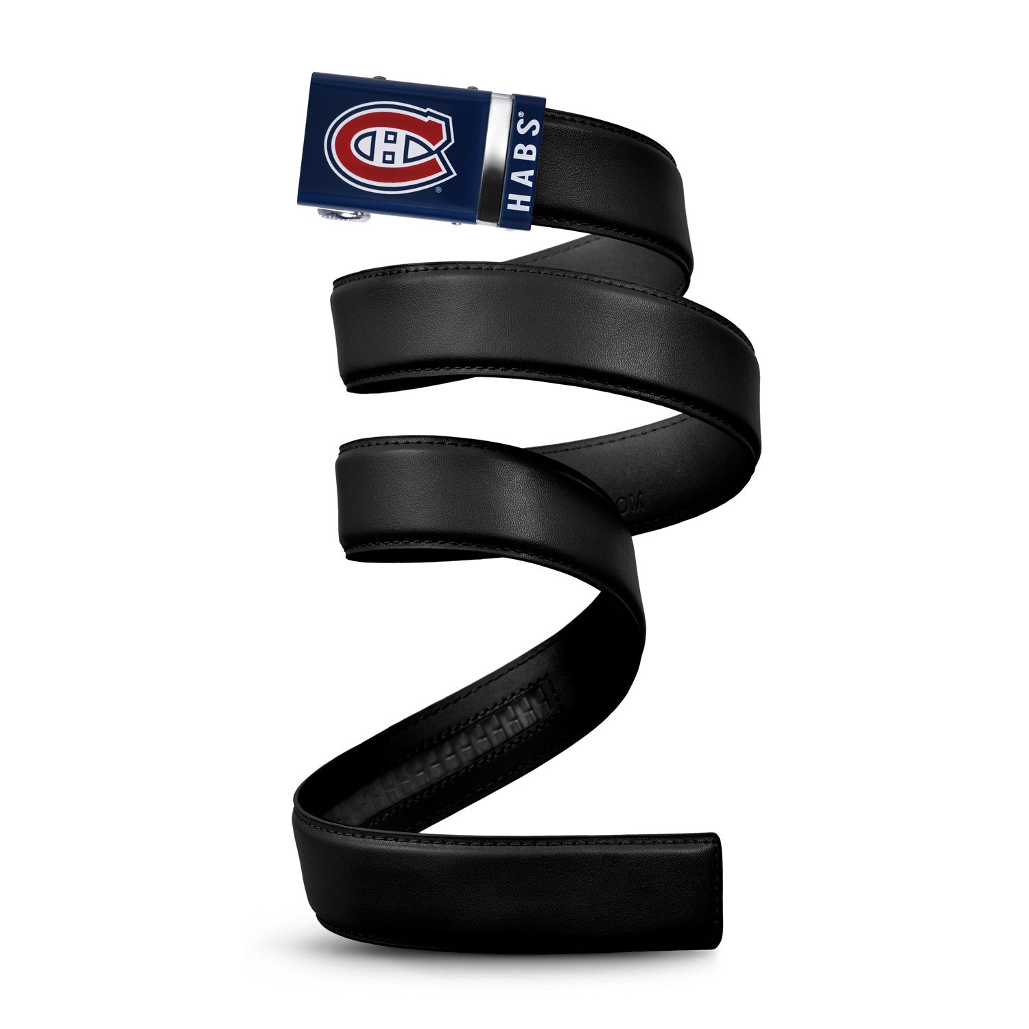 The officially licensed Montreal Canadiens Belt from Mission Belt Co. features an imprinted team logo and team name on the buckle under a clear acrylic finish. Genuine leather strap with protective coating and the interior houses a special track which is part of the unique no-holes perfect fit system. The buckle can be detached from the leather strap so you can always trim it down to size.