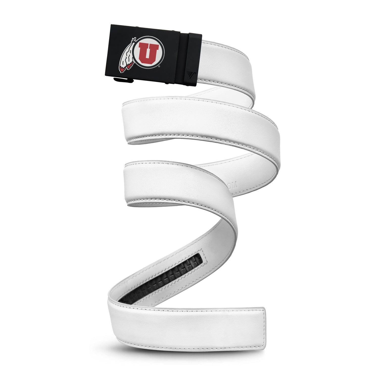 The officially licensed Utah Utes Belt features an imprinted team logo and team name on the buckle under a clear acrylic finish. Genuine leather strap with protective coating and the interior houses a special track which is part of the unique no-holes perfect fit system. The buckle can be detached from the leather strap so you can always trim it down to size.