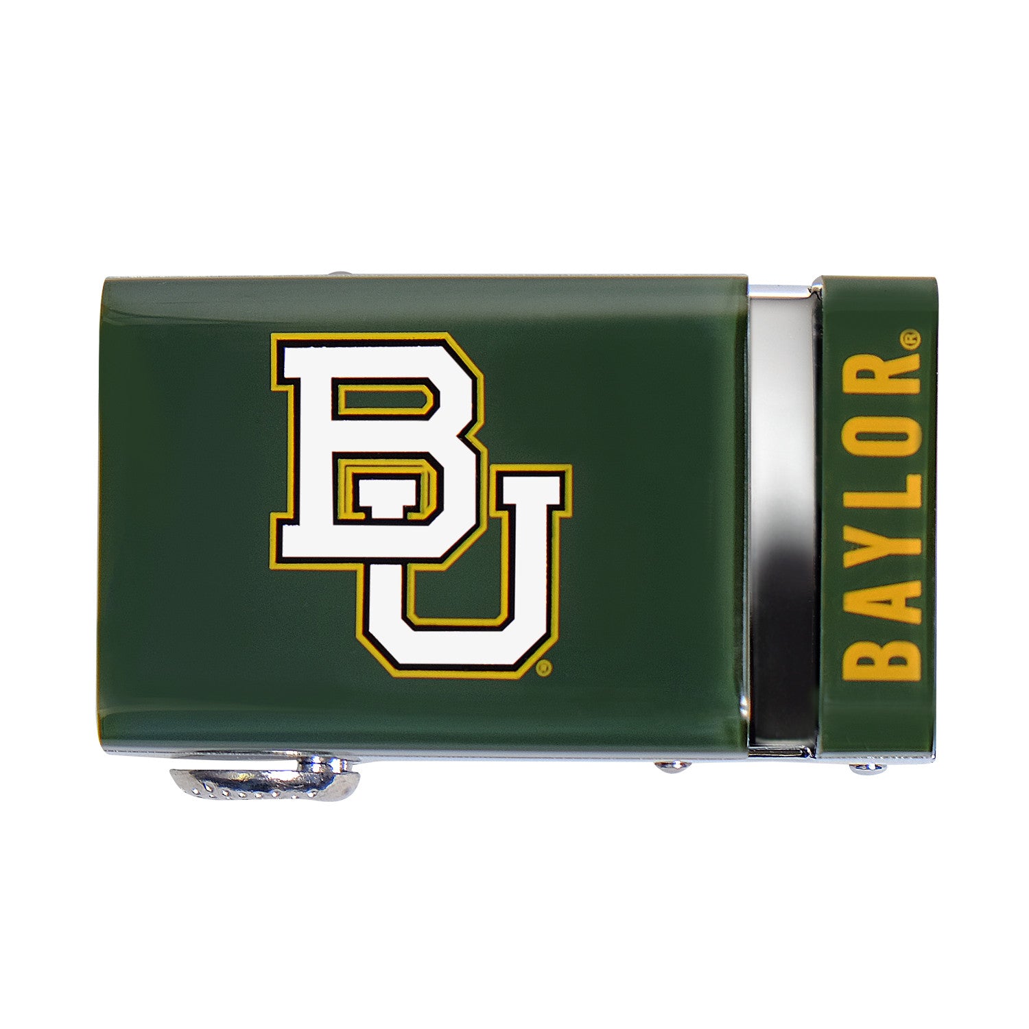 The officially licensed Baylor Bears buckle from Mission Belt features an imprinted team logo and name on the buckle under a clear acrylic finish. This buckle can be combined with your favorite Mission Belt 40mm strap. If you don't have one yet, you can find your pick of the litter here