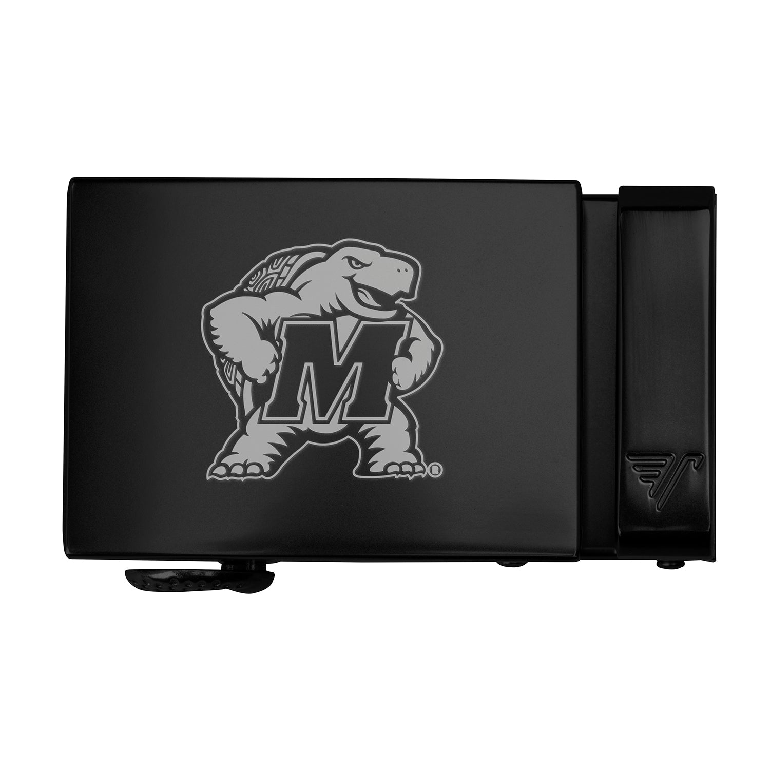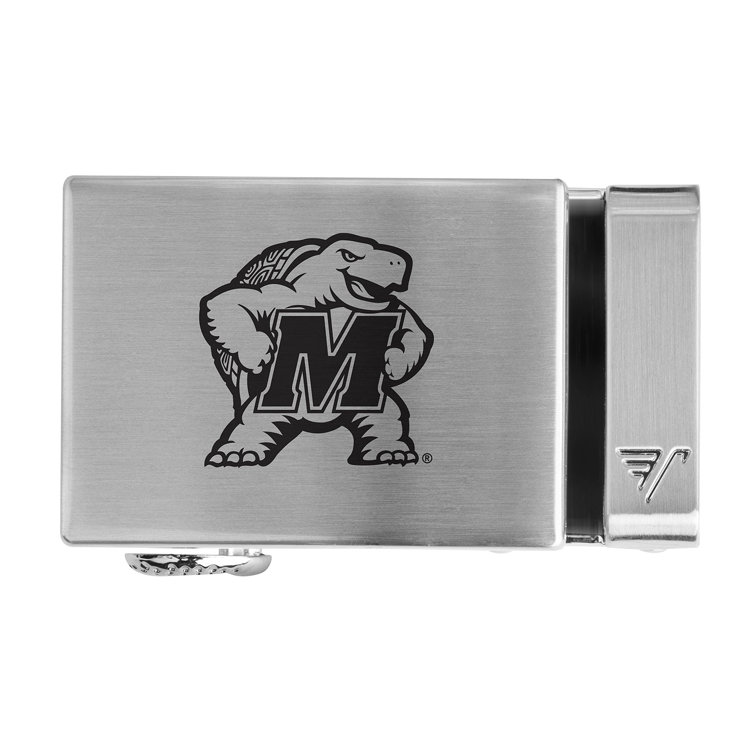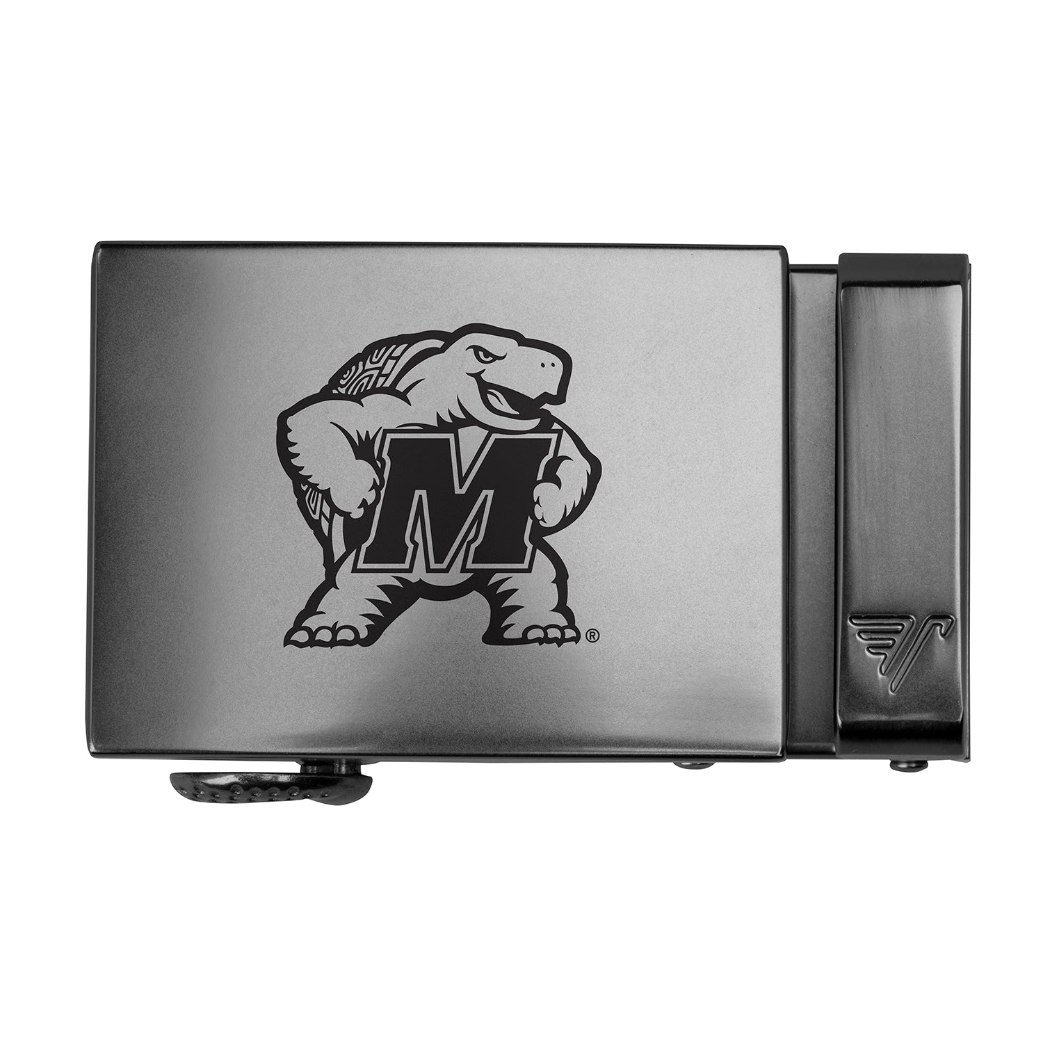 The officially licensed Maryland Terrapins buckle from Mission Belt features an imprinted team logo and name on the buckle under a clear acrylic finish. This buckle can be combined with your favorite Mission Belt 40mm strap. If you don't have one yet, you can find your pick of the litter here