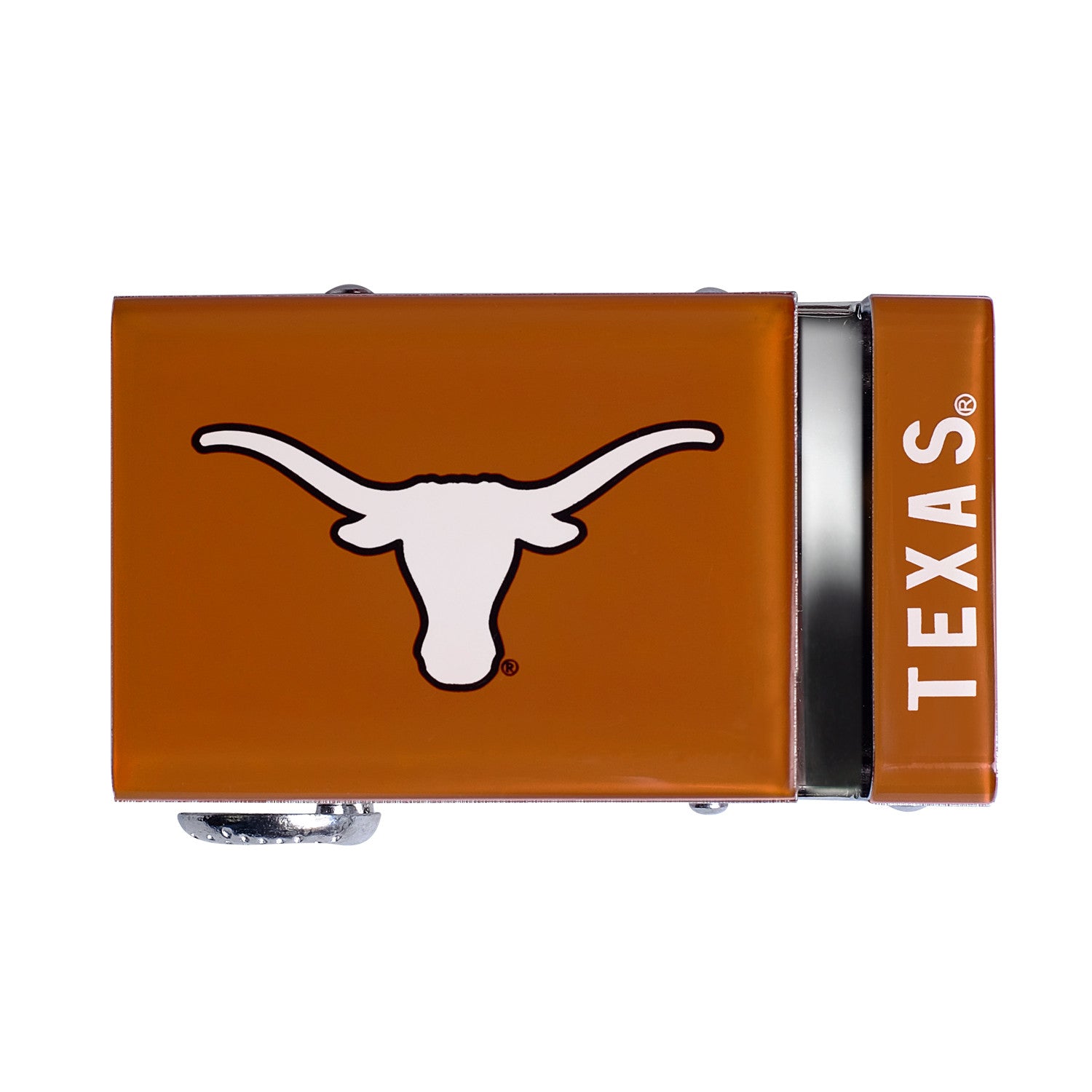 The officially licensed Texas Longhorns buckle from Mission Belt features an imprinted team logo and name on the buckle under a clear acrylic finish. This buckle can be combined with your favorite Mission Belt 40mm strap. If you don't have one yet, you can find your pick of the litter here